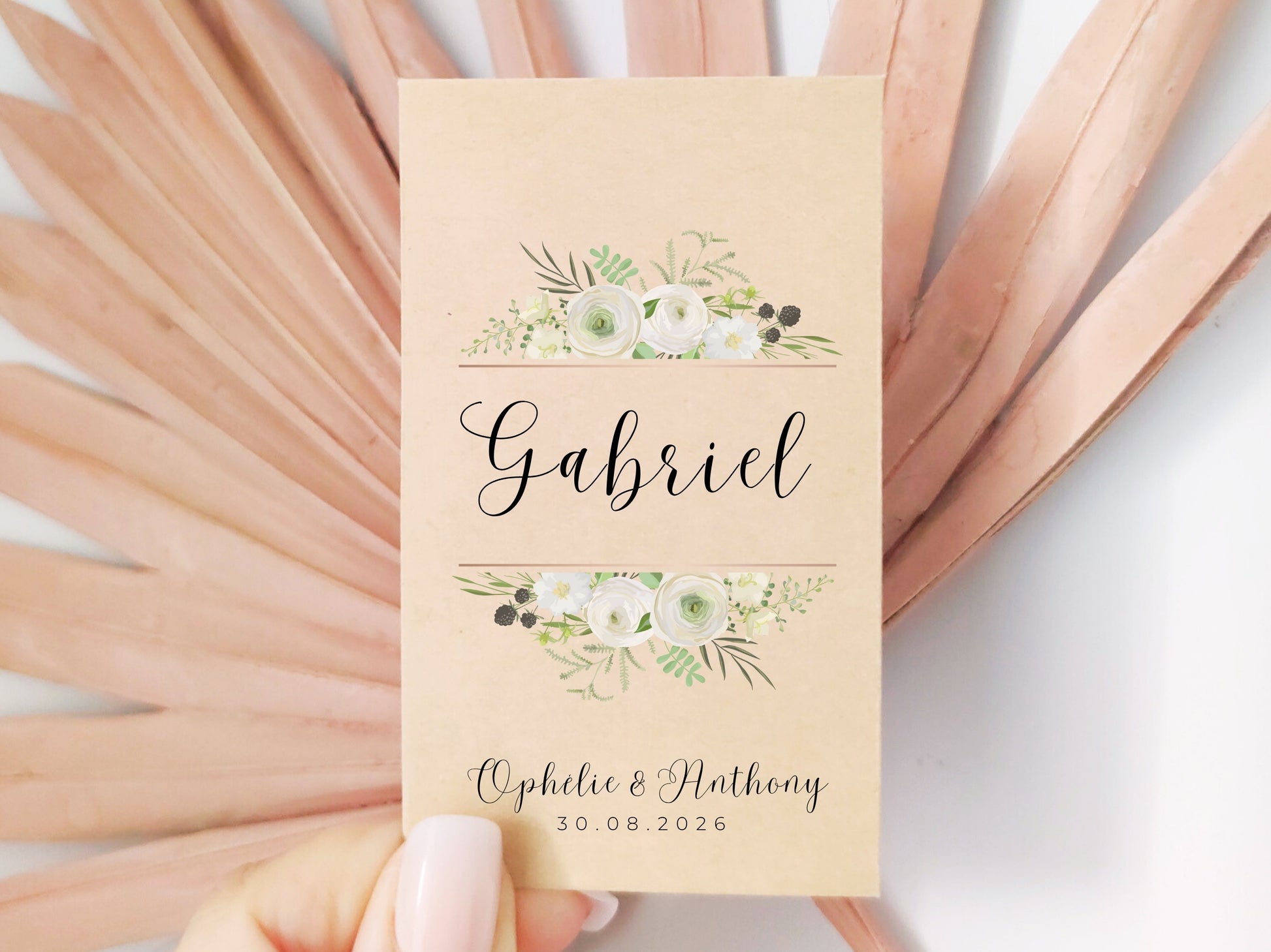 Marque-place - "Fleurs blanches"