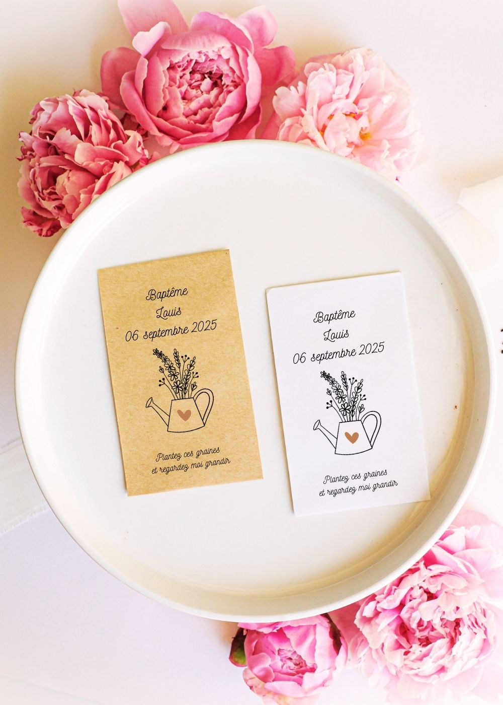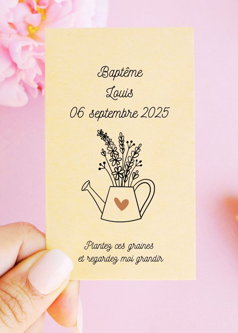 Sachets de graines - Baptême "Arrosoir cœur"